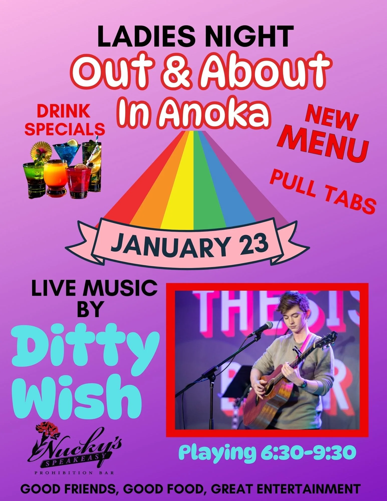 Ladies Night Out and About in Anoka Thursday, January 23, 2025 6:30 PM 9:30 PM Nucky's Speakeasy 300 East Main Street Anoka, MN, 55303 United States (map) Google Calendar ICS