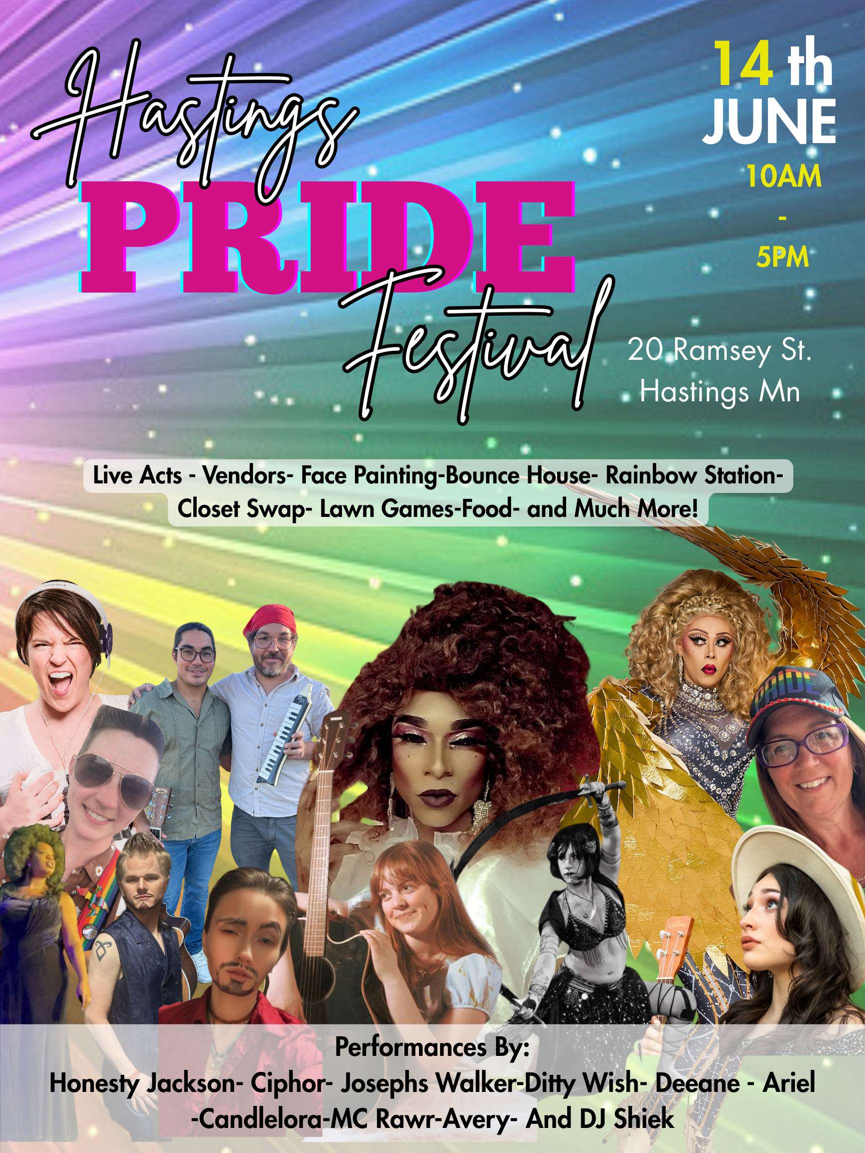 Back to All Events Hastings Pride Saturday, June 14, 2025 3:00 PM 4:00 PM 20 Ramsey Street Hastings, MN, 55033 United States (map) Google Calendar ICS